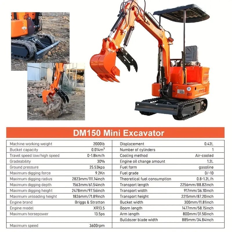 本地仓库限时优惠!免费赠送挖掘机!微型爬行式挖掘机,液压拇指顶篷B&S发动机EPA认证,一体成型防护罩,适用于仓库、建筑工地,1吨